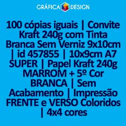 E-mail LUIZ@GRAFICA.DESIGN100 cópias iguais | Convite Kraft 240g com Tinta Branca 9x10cm | id 457855 | 10x9cm A7 SUPER | Papel Kraft 240g MARROM + 5º Cor BRANCA | Impressão FRENTE e VERSO Coloridos | 4x4 cores