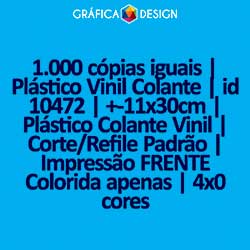 1.000 cópias iguais | Plástico Vinil Colante | id 10472 | +-11x30cm | Plástico Colante Vinil | Impressão FRENTE Colorida apenas | 4x0 cores