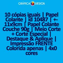 10 cópias iguais | Papel Colante | id 10487 | +-11x9cm | Papel Colante Couchê 90g | Meio Corte + Corte Especial | Destaque & Aplique | Impressão FRENTE Colorida apenas | 4x0 cores