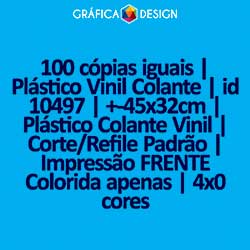 100 cópias iguais | Plástico Vinil Colante | id 10497 | +-45x32cm | Plástico Colante Vinil | Impressão FRENTE Colorida apenas | 4x0 cores