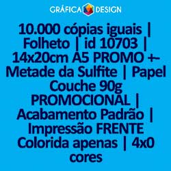 10.000 cópias iguais | Folheto | id 10703 | 14x20cm A5 PROMO +-Metade da Sulfite | Papel Couchê 90g PROMOCIONAL | Impressão FRENTE Colorida apenas | 4x0 cores