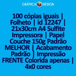 100 cópias iguais | Folheto | id 12247 | 21x30cm A4 Sulfite Impressora | Papel Couchê 150g Padrão MELHOR | Impressão FRENTE Colorida apenas | 4x0 cores