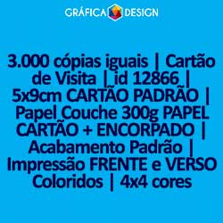 3.000 cópias iguais | Cartão de Visita | id 12866 | 5x9cm CARTÃO PADRÃO | Papel Couchê 300g PAPEL CARTÃO + ENCORPADO | Impressão FRENTE e VERSO Coloridos | 4x4 cores