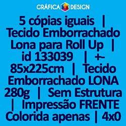 5 cópias iguais | Tecido Emborrachado LONA para Roll Up | id 133039 | +-85x225cm | Tecido Emborrachado LONA 280g | Impressão FRENTE Colorida apenas | 4x0 cores