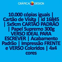 10.000 cópias iguais | Cartão de Visita | id 16845 | 5x9cm CARTÃO PADRÃO | Papel Supremo 300g VERSO IDEAL PARA ESCREVER | Impressão FRENTE e VERSO Coloridos | 4x4 cores
