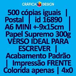 500 cópias iguais | Postal | id 16890 | 15x9cm A6 MINI +-4 dentro da Sulfite | Papel Supremo 300g VERSO IDEAL PARA ESCREVER | Impressão FRENTE Colorida apenas | 4x0 cores