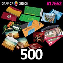 500 cópias iguais | Envelope Carta Aba Superior | id 17662 | +-11x23cm | Papel Sulfite 90g PAPEL SIMPLES | Corte/Vinco e Cola | Impressão FRENTE Colorida apenas | 4x0 cores