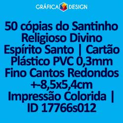 E-mail LUIZ@GRAFICA.DESIGN50 cópias do Santinho Religioso Divino Espírito Santo | Cartão Plástico PVC 0,3mm Fino Cantos Redondos +-8,5x5,4cm Impressão Colorida | ID 17766s012
