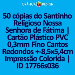 E-mail LUIZ@GRAFICA.DESIGN50 cópias do Santinho Religioso Nossa Senhora de Fátima | Cartão Plástico PVC 0,3mm Fino Cantos Redondos +-8,5x5,4cm Impressão Colorida | ID 17766s036