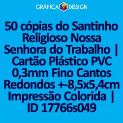 E-mail LUIZ@GRAFICA.DESIGN50 cópias do Santinho Religioso Nossa Senhora do Trabalho | Cartão Plástico PVC 0,3mm Fino Cantos Redondos +-8,5x5,4cm Impressão Colorida | ID 17766s049