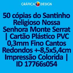 E-mail LUIZ@GRAFICA.DESIGN50 cópias do Santinho Religioso Nossa Senhora Monte Serrat | Cartão Plástico PVC 0,3mm Fino Cantos Redondos +-8,5x5,4cm Impressão Colorida | ID 17766s054