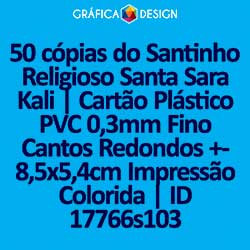 E-mail LUIZ@GRAFICA.DESIGN50 cópias do Santinho Religioso Santa Sara Kali | Cartão Plástico PVC 0,3mm Fino Cantos Redondos +-8,5x5,4cm Impressão Colorida | ID 17766s103