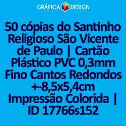 E-mail LUIZ@GRAFICA.DESIGN50 cópias do Santinho Religioso São Vicente de Paulo | Cartão Plástico PVC 0,3mm Fino Cantos Redondos +-8,5x5,4cm Impressão Colorida | ID 17766s152