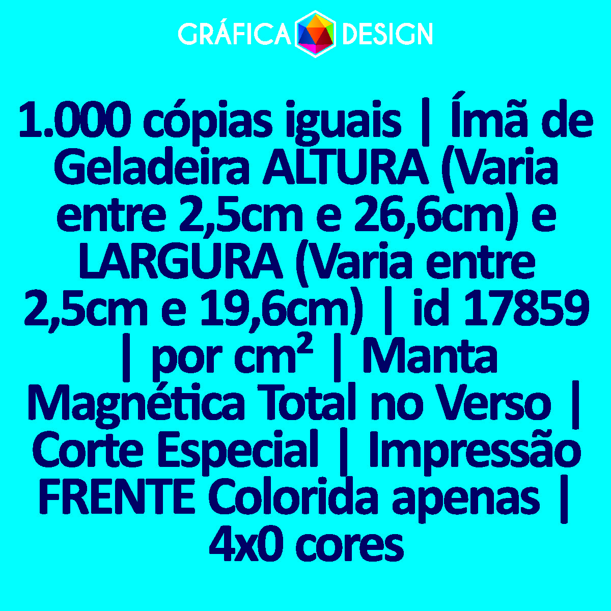 1.000 cópias iguais | Ímã de Geladeira ALTURA (Varia entre 2,5cm e 26,6cm) e LARGURA (Varia entre 2,5cm e 19,6cm) | id 17859 | por cm² | Manta Magnética Total no Verso | Corte Especial | Impressão FRENTE Colorida apenas | 4x0 cores