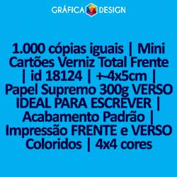 1.000 cópias iguais | Mini Cartões Verniz Total Frente | id 18124 | +-4x5cm | Papel Supremo 300g VERSO IDEAL PARA ESCREVER | Impressão FRENTE e VERSO Coloridos | 4x4 cores