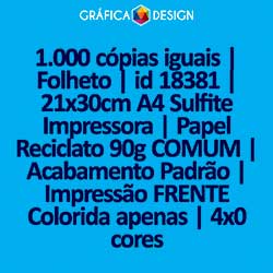 1.000 cópias iguais | Folheto | id 18381 | 21x30cm A4 Sulfite Impressora | Papel Reciclato 90g COMUM | Impressão FRENTE Colorida apenas | 4x0 cores