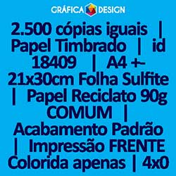 2.500 cópias iguais | Papel Timbrado | id 18409 | 21x30cm A4 Sulfite Impressora | Papel Reciclato 90g COMUM | Impressão FRENTE Colorida apenas | 4x0 cores