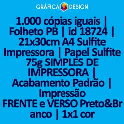 1.000 cópias iguais | Folheto PB | id 18724 | 21x30cm A4 Sulfite Impressora | Papel Sulfite 75g SIMPLES DE IMPRESSORA | Impressão FRENTE e VERSO Preto&Branco | 1x1 cor
