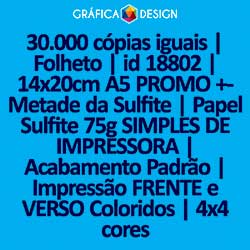 30.000 cópias iguais | Folheto | id 18802 | 14x20cm A5 PROMO +-Metade da Sulfite | Papel Sulfite 75g SIMPLES DE IMPRESSORA | Impressão FRENTE e VERSO Coloridos | 4x4 cores