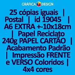25 cópias iguais | Postal | id 19045 | 18x10cm A6 EXTRA | DL Reduzido | Papel Reciclato 240g PAPEL CARTÃO | Impressão FRENTE e VERSO Coloridos | 4x4 cores
