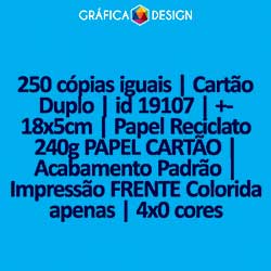 250 cópias iguais | Cartão Duplo | id 19107 | +-18x5cm | Papel Reciclato 240g PAPEL CARTÃO | Impressão FRENTE Colorida apenas | 4x0 cores