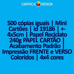 500 cópias iguais | Mini Cartões | id 19186 | +-4x5cm | Papel Reciclato 240g PAPEL CARTÃO | Impressão FRENTE e VERSO Coloridos | 4x4 cores