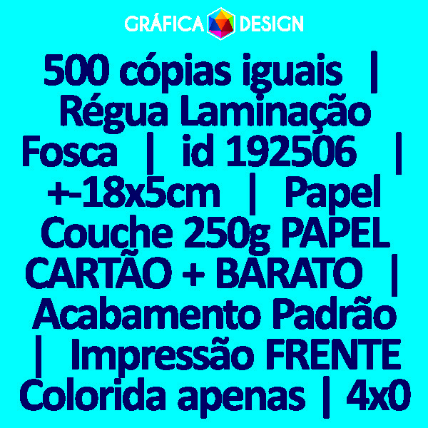 500 cópias iguais | Régua Laminação Fosca | id 192506 | +-18x5cm | Papel Couchê 250g PAPEL CARTÃO + BARATO | Impressão FRENTE Colorida apenas | 4x0 cores