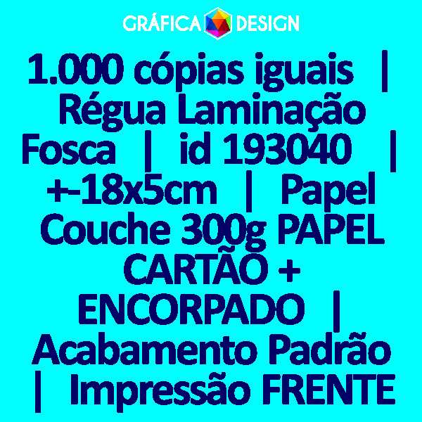 1.000 cópias iguais | Régua Laminação Fosca | id 193040 | +-18x5cm | Papel Couchê 300g PAPEL CARTÃO + ENCORPADO | Impressão FRENTE e VERSO Coloridos | 4x4 cores