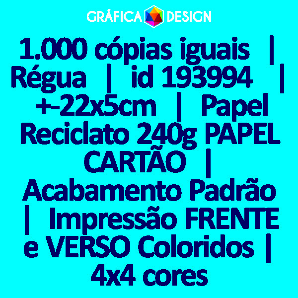 1.000 cópias iguais | Régua | id 193994 | +-22x5cm | Papel Reciclato 240g PAPEL CARTÃO | Impressão FRENTE e VERSO Coloridos | 4x4 cores