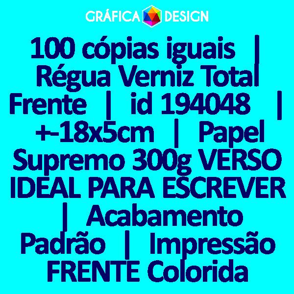 100 cópias iguais | Régua Verniz Total Frente | id 194048 | +-18x5cm | Papel Supremo 300g VERSO IDEAL PARA ESCREVER | Impressão FRENTE Colorida apenas | 4x0 cores