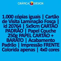 1.000 cópias iguais | Cartão de Visita Laminação Fosca | id 20764 | 5x9cm CARTÃO PADRÃO | Papel Couchê 250g PAPEL CARTÃO + BARATO | Impressão FRENTE Colorida apenas | 4x0 cores