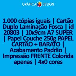 1.000 cópias iguais | Cartão Duplo Laminação Fosca | id 20803 | 10x9cm A7 SUPER | Papel Couchê 250g PAPEL CARTÃO + BARATO | Impressão FRENTE Colorida apenas | 4x0 cores