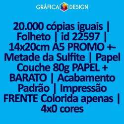 20.000 cópias iguais | Folheto | id 22597 | 14x20cm A5 PROMO +-Metade da Sulfite | Papel Couchê 80g PAPEL + BARATO | Impressão FRENTE Colorida apenas | 4x0 cores