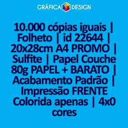 10.000 cópias iguais | Folheto | id 22644 | 20x28cm A4 PROMO | Sulfite | Papel Couchê 80g PAPEL + BARATO | Impressão FRENTE Colorida apenas | 4x0 cores