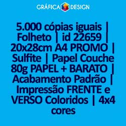 5.000 cópias iguais | Folheto | id 22659 | 20x28cm A4 PROMO | Sulfite | Papel Couchê 80g PAPEL + BARATO | Impressão FRENTE e VERSO Coloridos | 4x4 cores