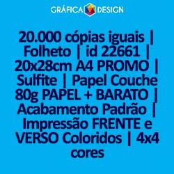 20.000 cópias iguais | Folheto | id 22661 | 20x28cm A4 PROMO | Sulfite | Papel Couchê 80g PAPEL + BARATO | Impressão FRENTE e VERSO Coloridos | 4x4 cores