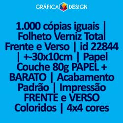 1.000 cópias iguais | Folheto Verniz Total Frente e Verso | id 22844 | +-30x10cm | Papel Couchê 80g PAPEL + BARATO | Impressão FRENTE e VERSO Coloridos | 4x4 cores