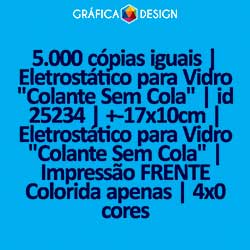 5.000 cópias iguais | Eletrostático para Vidro "Colante Sem Cola" | id 25234 | +-17x10cm | Eletrostático para Vidro "Colante Sem Cola" | Impressão FRENTE Colorida apenas | 4x0 cores