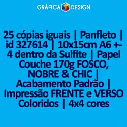 25 cópias iguais | Panfleto | id 327614 | 10x15cm A6 +-4 dentro da Sulfite | Papel Couchê 170g FOSCO, NOBRE & CHIC | Impressão FRENTE e VERSO Coloridos | 4x4 cores