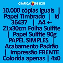 10.000 cópias iguais | Papel Timbrado | id 36437 | 21x30cm A4 Sulfite Impressora | Papel Sulfite 90g PAPEL SIMPLES | Impressão FRENTE Colorida apenas | 4x0 cores