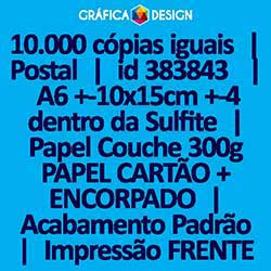 10.000 cópias iguais | Postal | id 383843 | 10x15cm A6 +-4 dentro da Sulfite | Papel Couchê 300g PAPEL CARTÃO + ENCORPADO | Impressão FRENTE e VERSO Coloridos | 4x4 cores