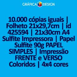 10.000 cópias iguais | Folheto 21x29,7cm | id 425594 | 21x30cm A4 Sulfite Impressora | Papel Sulfite 90g PAPEL SIMPLES | Impressão FRENTE e VERSO Coloridos | 4x4 cores