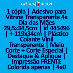 1 cópia | Adesivo para Vitrine Transparente 4x Dia das Mães 29,5x34,5cm | id 445496 | +-119x34cm | Plástico Colante Vinil Transparente | Meio Corte + Corte Especial | Destaque & Aplique | Impressão FRENTE Colorida apenas | 4x0 cores