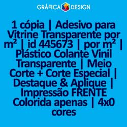 1 cópia | Adesivo para Vitrine Transparente por m² | id 445673 | por m² | Plástico Colante Vinil Transparente | Meio Corte + Corte Especial | Destaque & Aplique | Impressão FRENTE Colorida apenas | 4x0 cores