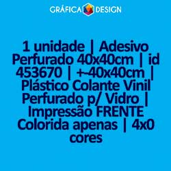 1 unidade | Adesivo Perfurado 40x40cm | id 453670 | +-40x40cm | Plástico Colante Vinil Perfurado p/ Vidro | Impressão FRENTE Colorida apenas | 4x0 cores