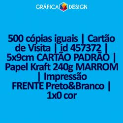 500 cópias iguais | Cartão de Visita | id 457372 | 5x9cm CARTÃO PADRÃO | Papel Kraft 240g MARROM | Impressão FRENTE Preto&Branco | 1x0 cor
