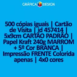 500 cópias iguais | Cartão de Visita | id 457414 | 5x9cm CARTÃO PADRÃO | Papel Kraft 240g MARROM + 5º Cor BRANCA | Impressão FRENTE Colorida apenas | 4x0 cores