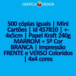 500 cópias iguais | Mini Cartões | id 457810 | +-4x5cm | Papel Kraft 240g MARROM + 5º Cor BRANCA | Impressão FRENTE e VERSO Coloridos | 4x4 cores