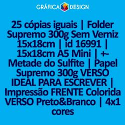 100 cópias iguais | Folder Kraft 240g com Tinta Branca 20x27cm | id 458515 | 20x27cm A4 MINI | Sulfite Menor | Papel Kraft 240g MARROM + 5º Cor BRANCA | Impressão FRENTE Colorida apenas | 4x0 cores