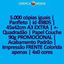 5.000 cópias iguais | Panfleto | id 49805 | 45x42cm A3 EXTRA | +-Quadradão | Papel Couchê 90g PROMOCIONAL | Impressão FRENTE Colorida apenas | 4x0 cores